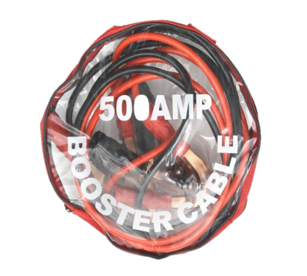 Cable de arranque resistente y seguro, diseñado para transferir corriente entre baterías de vehículos. Su capacidad de 500 amperios garantiza un encendido rápido y confiable en autos, camionetas y maquinaria liviana.