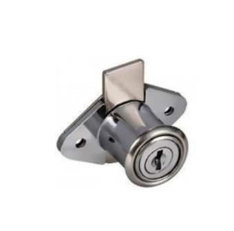 Cerradura compacta con llave triangular, diseñada para gabetas, gavetas y guanteras metálicas. Su diseño práctico y seguro la hace ideal para mobiliario de oficina, vehículos o equipos especiales.