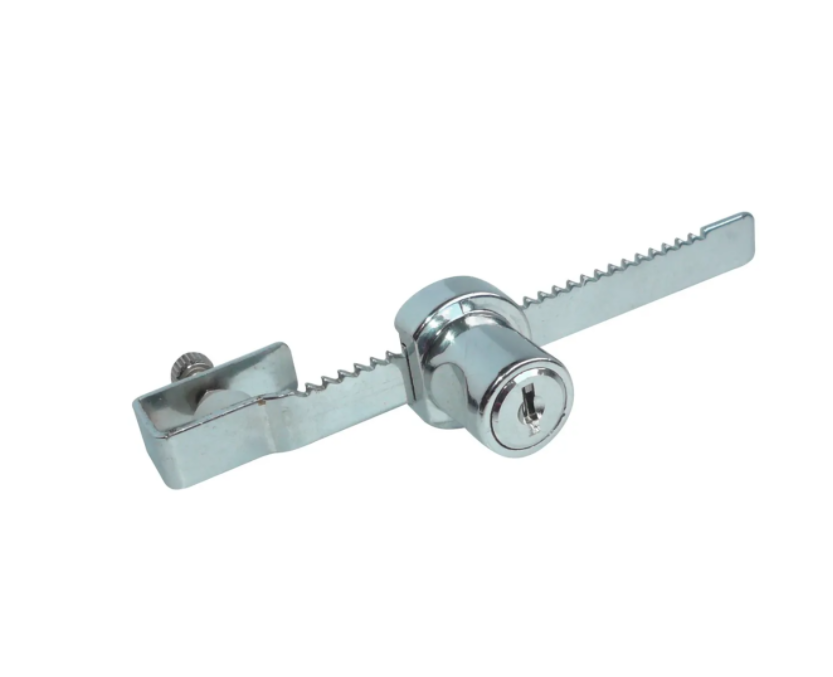 Cerradura práctica y segura, diseñada especialmente para vitrinas de vidrio en hogares, oficinas o comercios. Brinda protección sin afectar la estética del mobiliario.