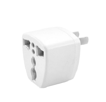 Adaptador diseñado para conectar enchufes europeos a tomas locales, brindando seguridad gracias a su polo a tierra. Ideal para viajeros y uso en equipos importados.