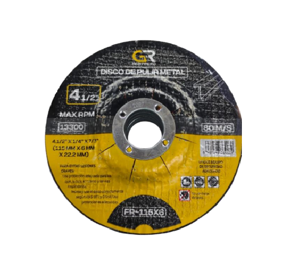 Disco abrasivo diseñado para pulir, desbastar y dar acabado a superficies metálicas. Con medida de 4.1/2” x 1/4”, ofrece alto rendimiento, durabilidad y seguridad, siendo ideal para trabajos de herrería, mantenimiento y metalmecánica.