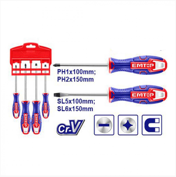 EMTOP DESTORNILLADOR 4 PCS CR-V ENCAUCHETADO/IMANT (ESST0402)
