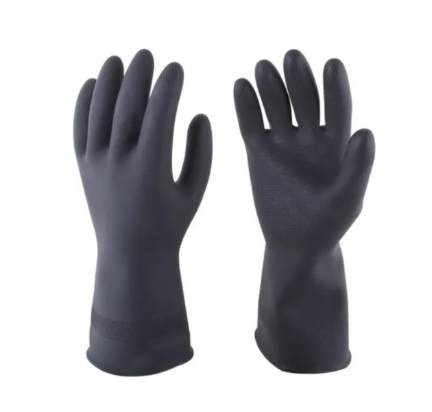 Guante de protección fabricado en látex natural de alta resistencia, ideal para trabajos domésticos e industriales que requieren aislamiento contra humedad y productos químicos suaves.