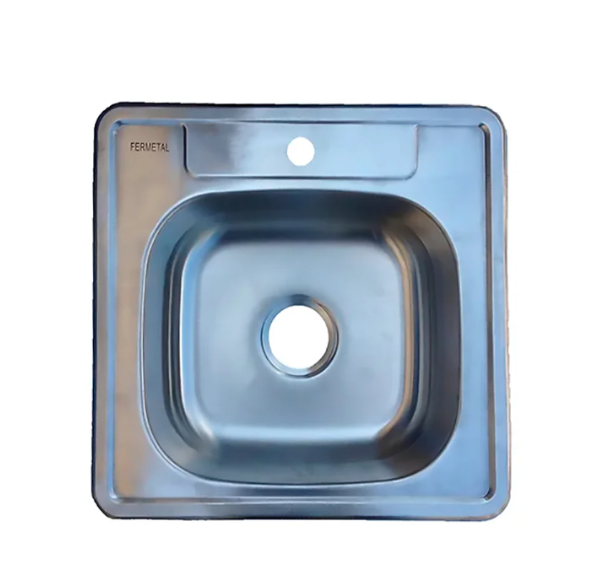 Lavaplatos en acero inoxidable con diseño compacto y práctico, disponible en medidas de 51 x 43 cm a 62 x 48 cm. Incluye hueco para instalación de grifería, ideal para cocinas residenciales que requieren resistencia, higiene y fácil limpieza.