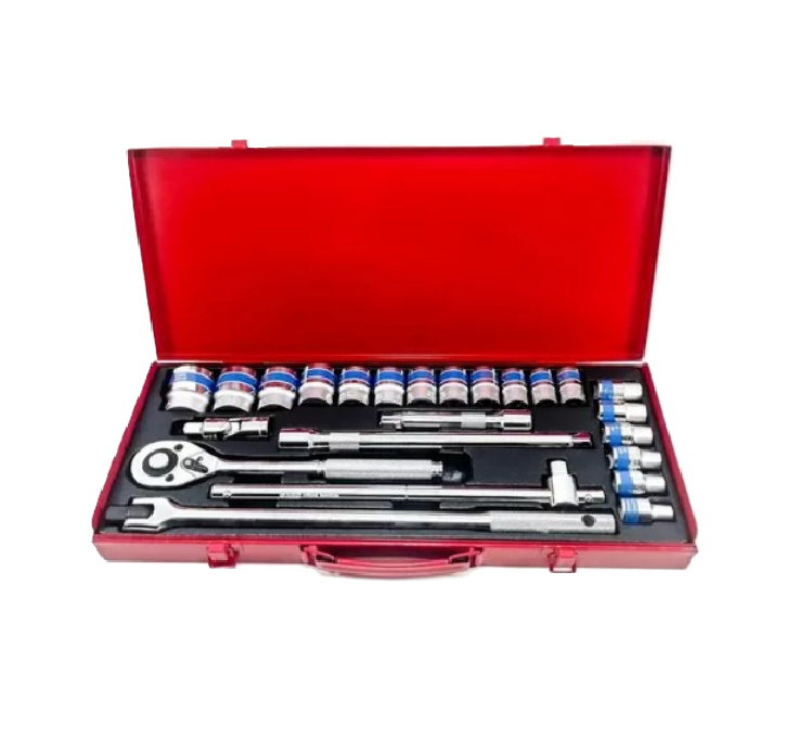 Juego completo de rachet con copas de alta resistencia fabricadas en acero cromo vanadio, diseñado para trabajos exigentes en talleres, mecánica automotriz y mantenimiento industrial.