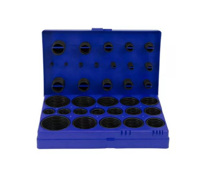 Este set de O-rings incluye 363 unidades distribuidas en 30 medidas diferentes, organizadas en una práctica caja plástica azul. Son ideales para tareas de mantenimiento, mecánica, plomería, hidráulica y neumática. Fabricados en material resistente al aceite, agua, y productos químicos comunes.
